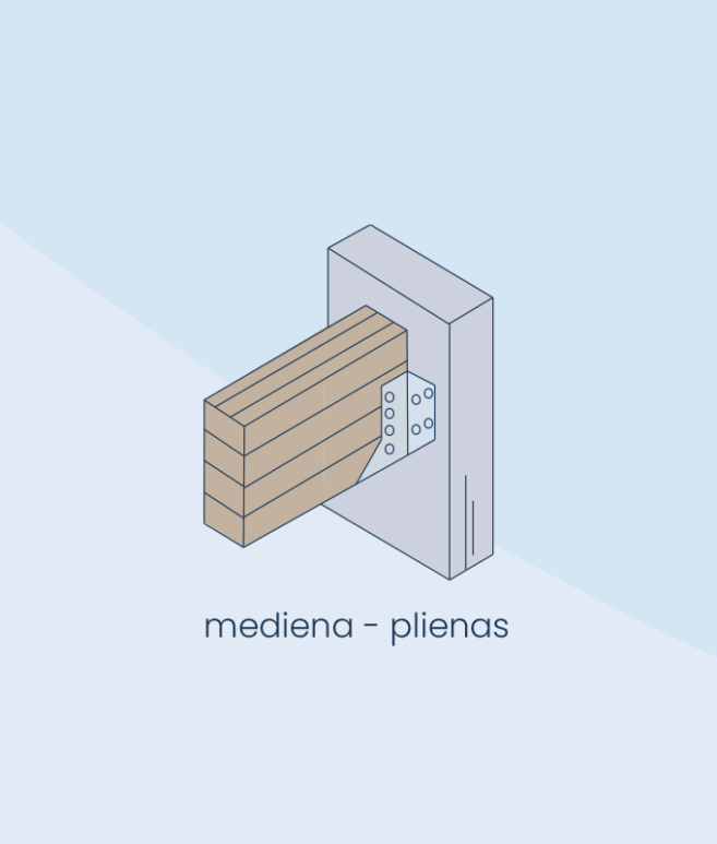 • Mediena, glulam, LVL, CLT, fanera, betonas ir plienas